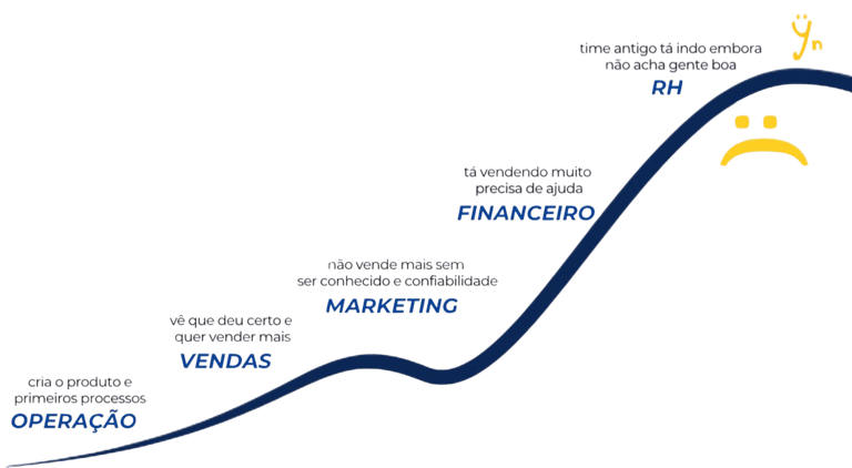 Sérgio, como muitos empreendedores, começou com uma grande ideia e foco total na Operação. Ele desenvolveu um produto incrível e os primeiros processos para fazê-lo funcionar. Naturalmente, o próximo passo foi Vendas: ele viu que o negócio tinha potencial e montou uma estrutura para vender mais.